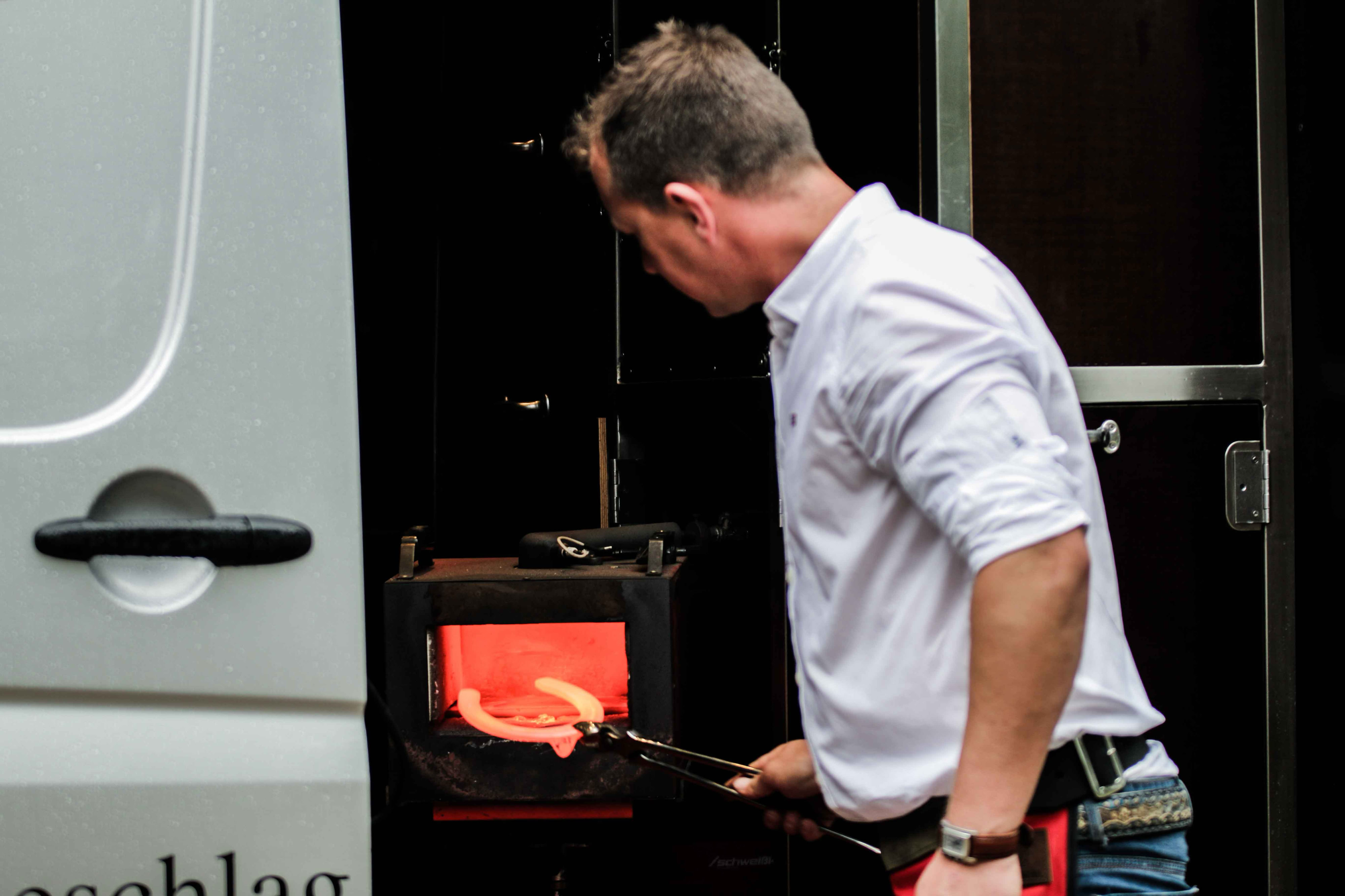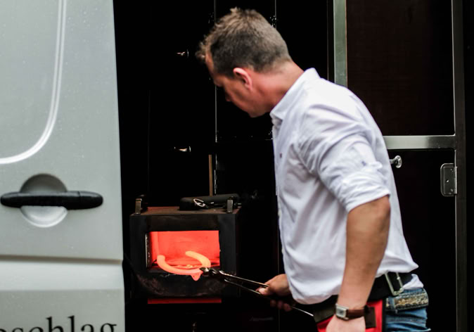 Mit meinem komplett ausgestatteten, geländesicheren Schmiedewagen komme ich zu Ihrem Pferd. Komplett ausgerüstet mit Hufeisen in allen Formen und Größen, sowie allem, was man für Spezialanfertigungen oder auch Notfälle braucht.
